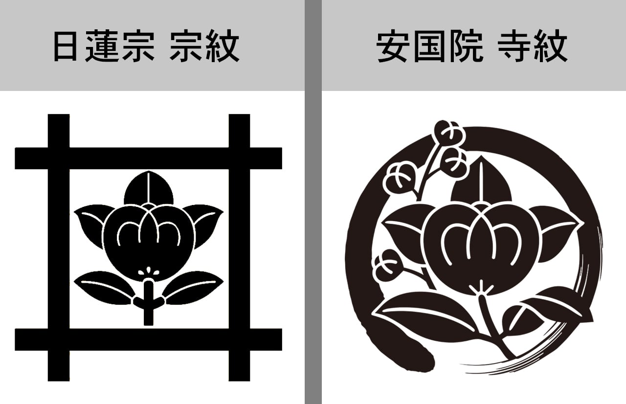 以下は、千葉県市原市にある安国院様のご依頼でデザインした寺紋です。(右)